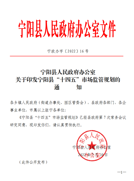 寧陽縣“十四五”市場監管規劃
