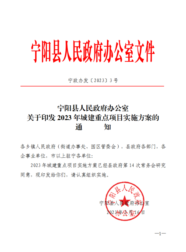為切實規劃實施好2023年城市重點建設項目,進一步優化城市發展框架、功能布局,推動寧陽城市高質量發展,制定本實施方案。