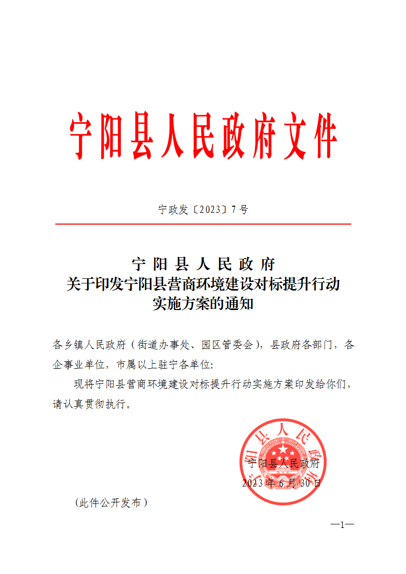 寧陽縣營商環(huán)境建設(shè)對標(biāo)提升行動(dòng)配套措施