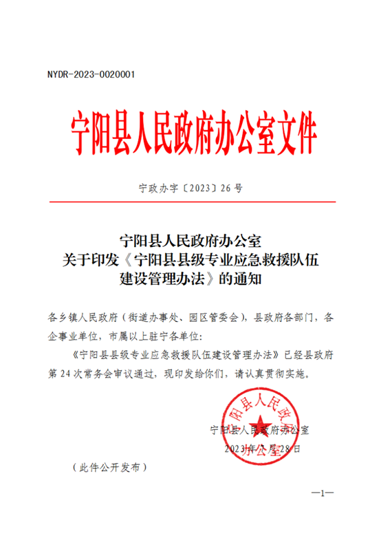 | 發布機構 | 寧陽縣政府辦公室 | 發文文號 | 寧政辦字〔2023〕26號 |