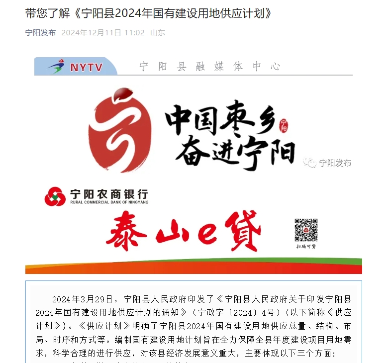 原文鏈接:寧政字〔2024〕4號寧陽縣人民政府關于印發寧陽縣2024年國有建設用地供應計劃的通知