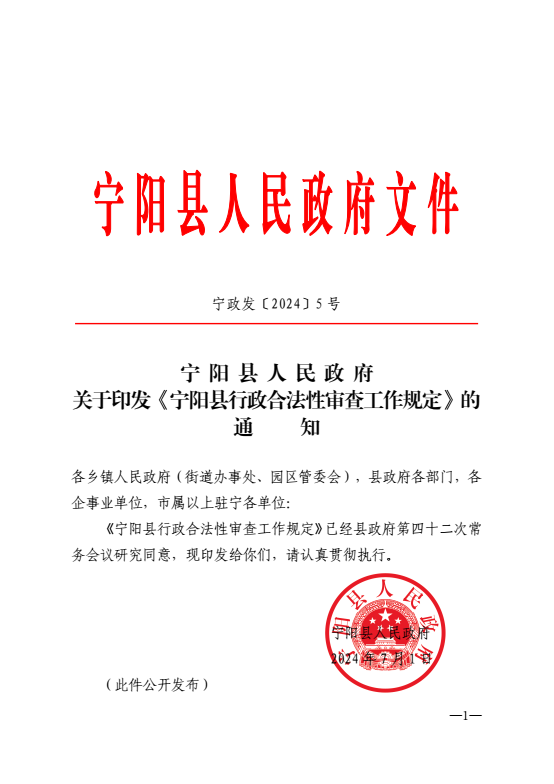 《寧陽(yáng)縣行政合法性審查工作規(guī)定》已經(jīng)縣政府第四十二次常務(wù)會(huì)議研究同意,現(xiàn)印發(fā)給你們,請(qǐng)認(rèn)真貫徹執(zhí)行。