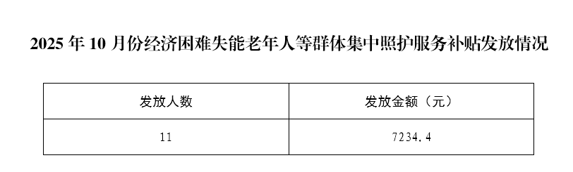 寧陽縣2025年10月份經濟困難失能老年人集中照護服務補貼發放情況