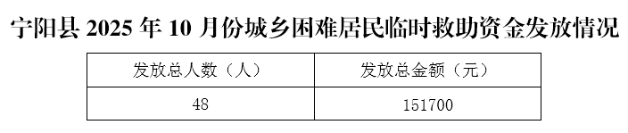 【臨時救助人數和資金支出】:寧陽縣2025年10月份城鄉困難居民臨時救助資金發放情況