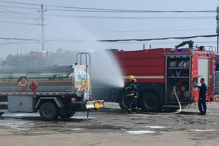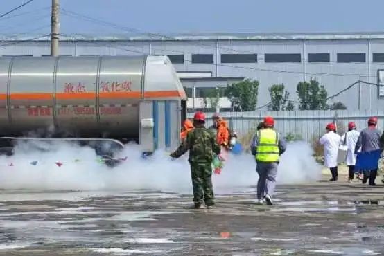 本次演練模擬物流園區內一臺移動式壓力容器因閥門故障發生氣體泄漏的突發場景。事故警報拉響后,企業迅速啟動應急預案,警戒組、搶險組、救援組、通訊組快速響應,有序完成現場封鎖、人員疏散、泄漏點排查、設備搶修等環節。磁窯所執法人員全程觀摩,針對應急處置流程、防護裝備使用、現場指揮協調等關鍵環節提出優化建議,確保演練貼近實戰、科學高效。