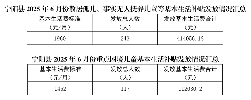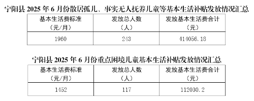 【兒童福利補貼發(fā)放情況】:寧陽縣2025年6月份孤困兒童生活費發(fā)放情況匯總