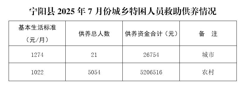 【特困人員救助人數及資金支出】寧陽縣2025年7月份城鄉特困人員救助供養情況