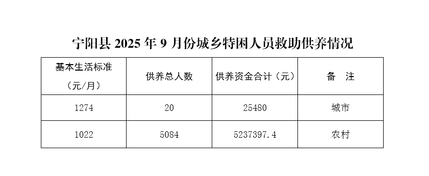 【特困人員救助人數及資金支出】寧陽縣2025年9月份城鄉特困人員救助供養情況